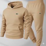 Confectionnés dans un tissu doux et respirant, le sweat à capuche et le pantalon de jogging assurent un confort optimal toute la journée. Le sweat est équipé d’une poche kangourou classique et d’une capuche ajustable, tandis que le pantalon dispose d’une taille élastique et de chevilles resserrées pour une tenue souple et sécurisée.